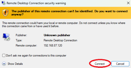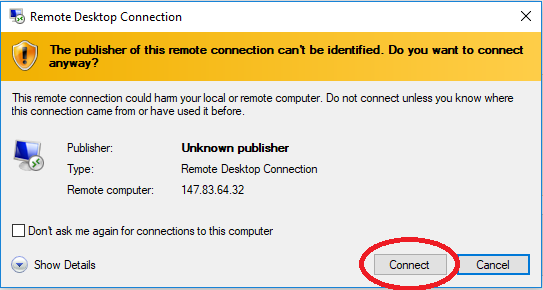 5. Ignoreu les alertes de seguretat, prement el botó "Connect".
