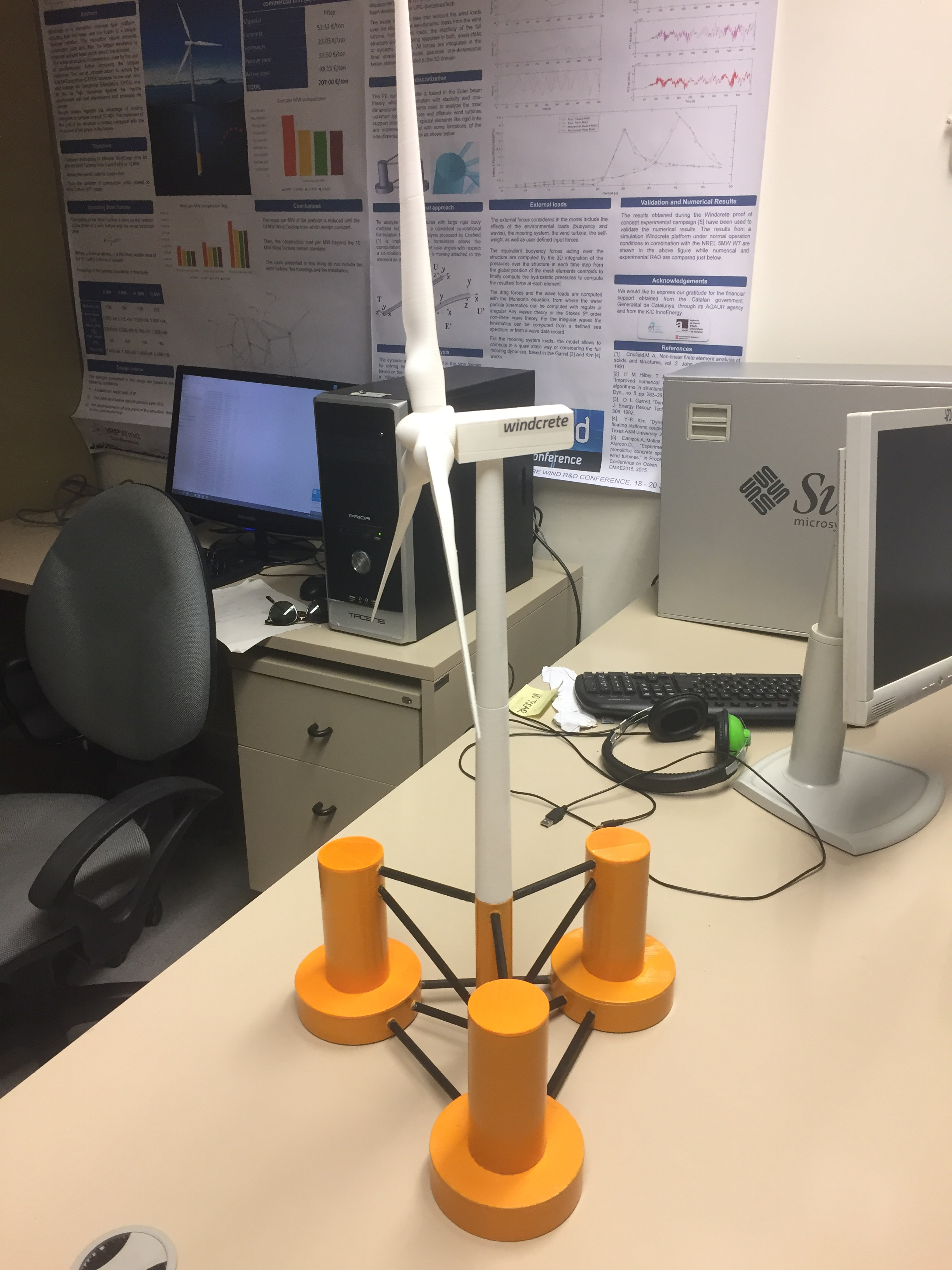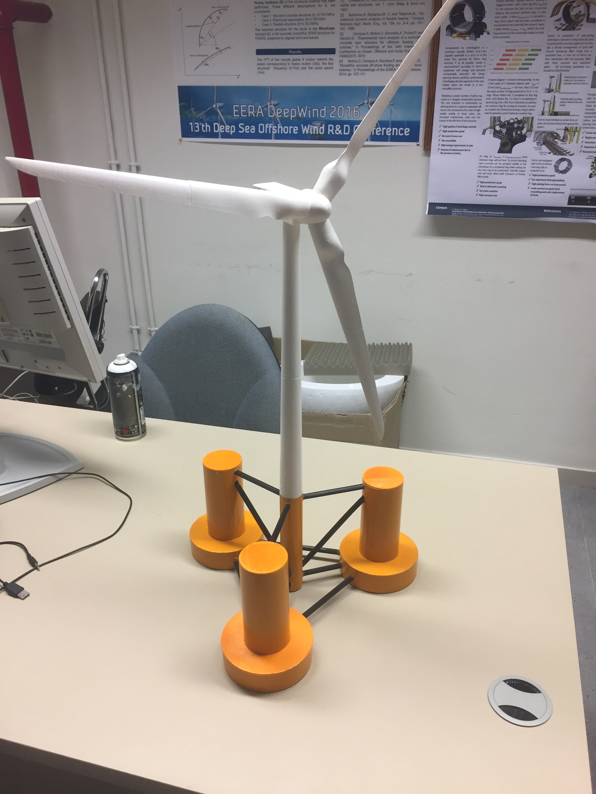 A fi de mostrar als estudiants de l’assignatura Energies Marines Renovables com són les plataformes flotants per a aerogeneradors marins, es va decidir fer aquesta maqueta a escala del prototip del qual es disposava la geometria digital, que es diu DeepC-Wind. Aquest prototip és molt conegut dins la comunitat de l’energia eòlica flotant perquè ha format part dels projectes OC4 i OC5 de l’Agència Internacional de l’Energia.